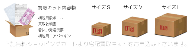 | ご自宅に査定品の梱包材が無い方は完全無料の買取キットがございます。 |